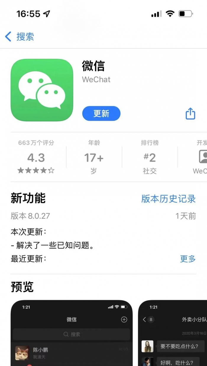 新版微信更新页面
