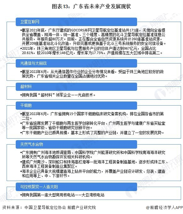 “十四五”时期,广东省聚焦世界新产业、新技术发展前沿领域,立足全省技术和产业发展基础优势,积极谋划培育卫星互联网、光通信与太赫兹、干细胞、超材料、天然气水合物、可控核聚变—人造太阳等若干未来产业领域。面向国内外技术更新突破和产业升级重大需求,促进产业、技术交叉融合发展,布局一批未来产业技术研究院,丰富未来产业应用场景,运用前沿技术推动全省产业跨界融合创新发展。