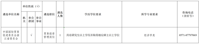 省贸促会拟遴选机关贸易投资管理岗位1名。