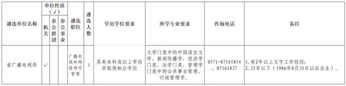 省广播电视局计划遴选2名一级主任科员以下职级(含其他相当职级层次)。