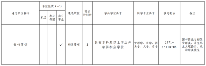 省档案馆拟遴选档案管理职位2名。