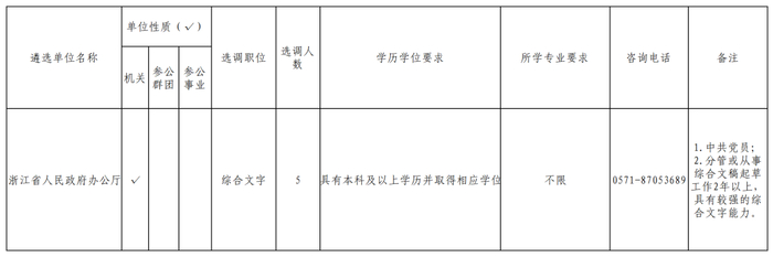 省政府办公厅选调综合文字岗位5名。