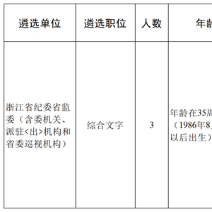 省纪委省监委(含委机关、派驻<出>机构和省委巡视机构)公开遴选综合文字职位公务员3名。