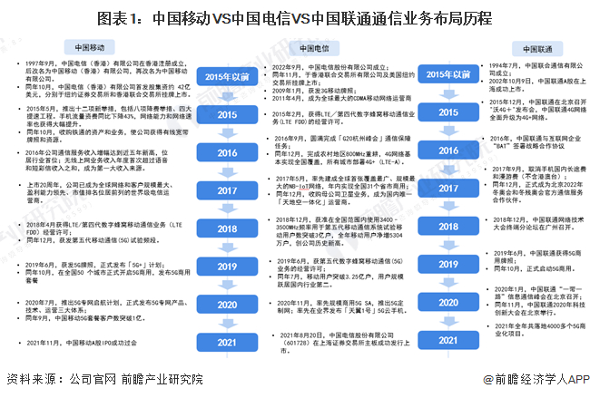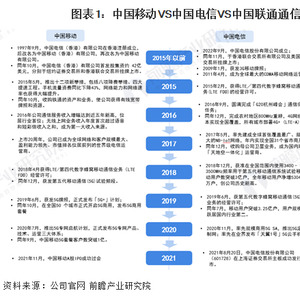 目前,中国通信产业的龙头企业分别是中国移动核、中国电信和中国联通,三家企业在通信业务上的布局历程如下: