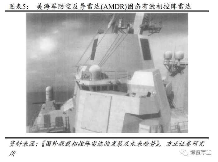 在舰载雷达领域,AN/SPY-2 是一种固态多功能相控阵雷达,将成为美国海军下一代的主要舰载雷达。该雷达功率孔径大,分辨率高,能完成 AN /SPY-1 的全部功能,并能在更远的距离探测、识别来袭的弹道导弹目标。