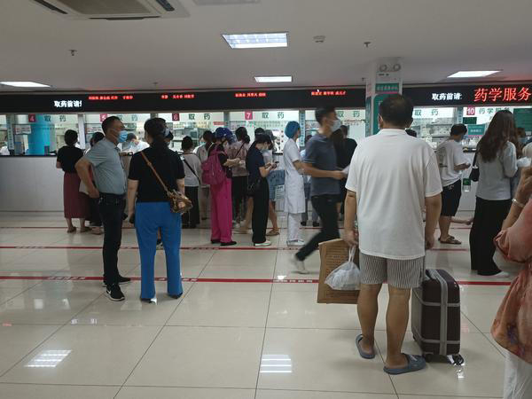初早的长沙,一瞬间将温度拉到“37度”以上,但依旧有大量患者及家属提前涌入医院内,在太阳下排队等待进入门诊楼。