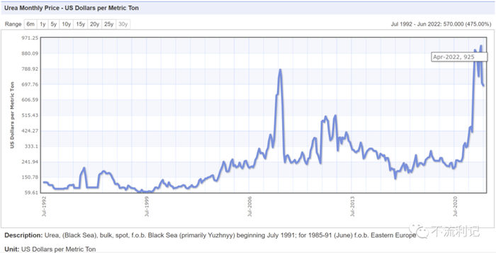 “造不如买”,这个逻辑平时没事,但每次一遇到经济危机,化肥第一个涨价,然后粮食涨价,上一次化肥涨价是2008年,这次是2021年开始的,这两次高耸的价格K线就像一把镰刀,狠狠地割了斯里兰卡韭菜。