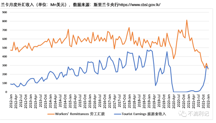 2020年疫情以后旅游业收入没了,只剩下打工人海外汇款勉力维持,但是在2021年下半年开始连打工人汇款也出现断崖式下跌,主要原因还是归功于斯里兰卡当局,他们又想要逆天改命。