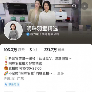 但近日,格力“明珠羽童精选”抖音账号被爆更换头像,董明珠和孟羽童的合照被撤下,更换为董明珠的单人照片,孟羽童疑似淡出直播间。