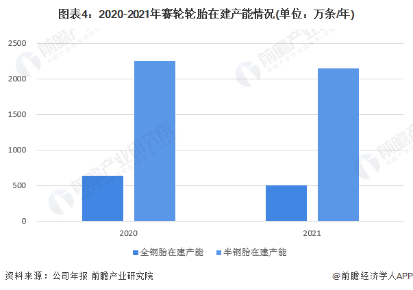 从在建产能来看,2021年,赛轮轮胎全钢胎在建产能为505万条/年,同比下滑21.09%;半钢胎在建产能为2150万条/年,同比下滑4.44%。