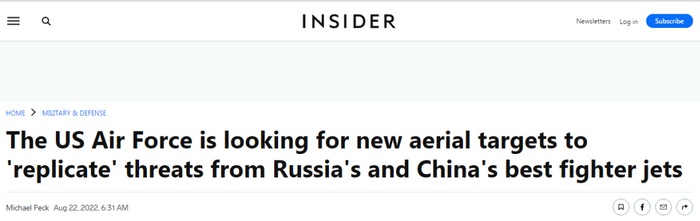 报道称,随着中国和俄罗斯发展先进的隐形战机,美国空军面临两个问题。首先是如何击败旨在最大限度地减少雷达探测的尖端战机——例如中国的歼-20和俄罗斯的苏-57隐形战斗机。反过来,这又引发了另一个问题:美军飞行员如何在没有现实目标的情况下,针对这些飞机测试武器和战术?