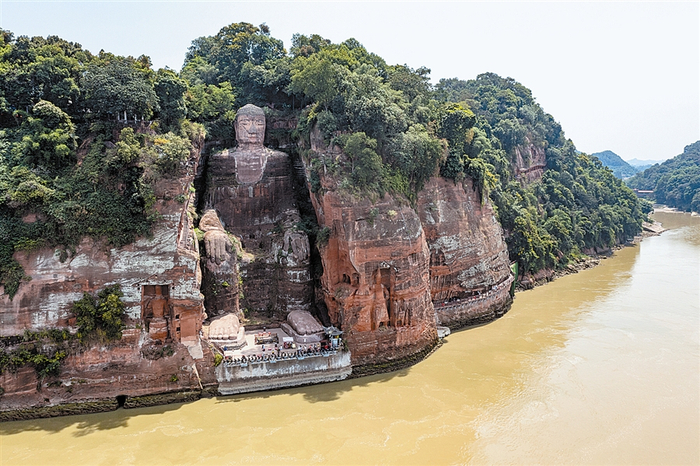 目前,乐山大佛平台水位海拔高度仅约354米,与往年8月同期正常水位相比低了近2米。