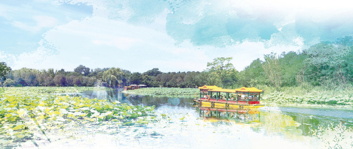 优化游客沉浸体验方面,应通过旅游意境流程的丰富来延长游客的驻留时间,即不再是依赖遗址和水景风光来完成简单打卡,而要使游客真正从粗疏的游园观光转移到深度的文化体验。可以重新对驻留点和快速观光点做空间结构设计,从中填充不同的游园功能区。比如,在水边小景旁打造提供长时间绘画写生的功能区,配合相关的写生摹本、画具等配套产品店铺,形成一个丰富的深度游览场景。