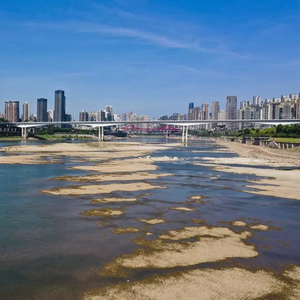 8月17日,嘉陵江重庆段水位明显下降 图片来源:新华社