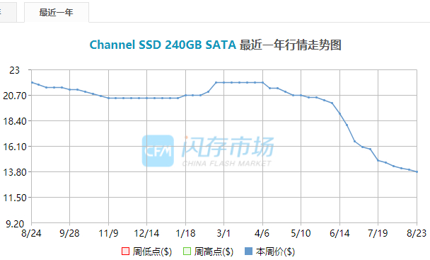 嵌入式存储的代表产品eMCP(eMMC+LPDDR3)、固态硬盘(240GB)、移动存储(MicroSD 128GB)均从今年5月开始有较大幅度的下跌,部分产品跌幅甚至超过3成。