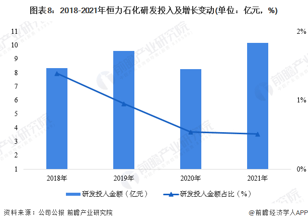 公司采取市场差异化、技术高端化与装置规模化、业务一体化并重的发展路径,在研发方面保持持续投入。2021年,公司在研发方面共投入10.19亿元。但从整体研发投入占比情况来看,公司研发投入占比呈下降趋势,2021年公司研发投入占总营业收入的比例为0.51%。