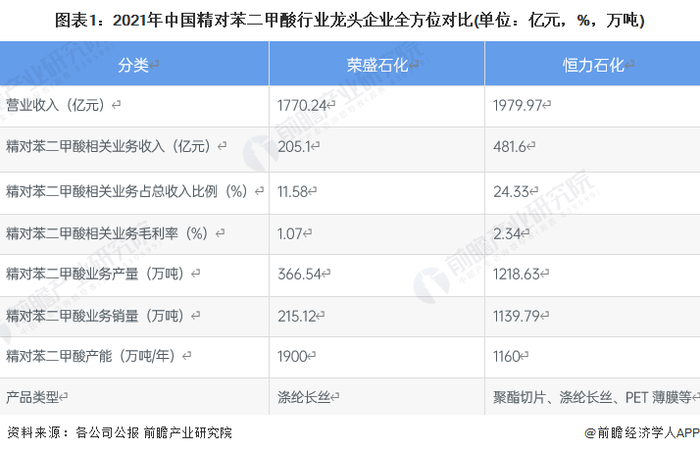 1、中国精对苯二甲酸行业龙头企业全方位对比