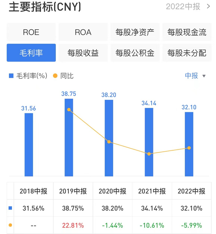 财报显示,今年上半年,麒盛科技的毛利率为32.10%,同比下降5.99%,而这已是麒盛科技连续三年毛利率同比下滑,2020和2021年上半年,麒盛科技的毛利率分别为38.20%、34.14%,分别同比下降1.44%、10.61%。