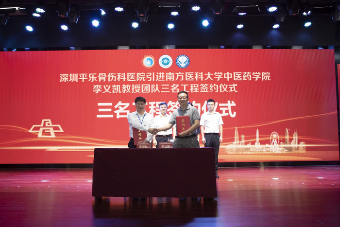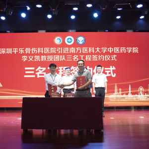 记者25日从深圳平乐骨伤科医院(深圳市坪山区中医院)获悉,深圳“三名工程”南方医科大学中医药学院李义凯教授团队落户该院。近日,在该院总院区举行了“三名工程”签约仪式。此次引进李义凯教授团队将助力平乐骨伤科医院打造“深圳市中医骨伤科诊疗中心”专科高地。