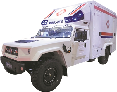 在湖北十堰一家汽车企业的展览区,记者注意到一辆越野救护车。这款越野救护车涉水深度达1.2米,离地间隙38厘米,在-35℃~41℃的环境下都可以正常行驶。可以应用于高原、山地等多种地域环境。在广东地区,水灾多发,汛期较长,在遇到涉水或崎岖道路时,遇到台风、地震等自然灾害时,该车都可以满足救援需求。