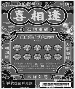 除了精美的喜字纹,票面覆盖膜的四周还印有向上向善的四字成语,如“心想事成”“一帆风顺”“吉祥如意”等,旨在通过“喜相逢”这样一张小小的福利彩票,传递美好祝福,展现人们对美好生活的无限憧憬与向往。