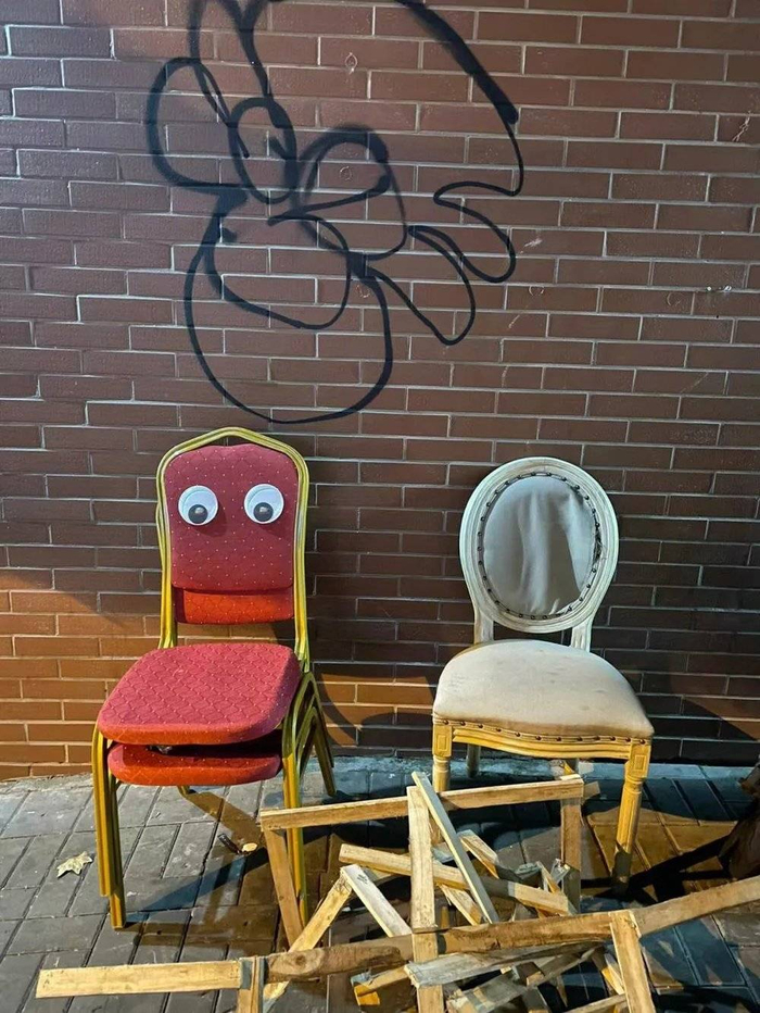 襄阳北路的椅子,波妞给它们贴上了贴纸。
