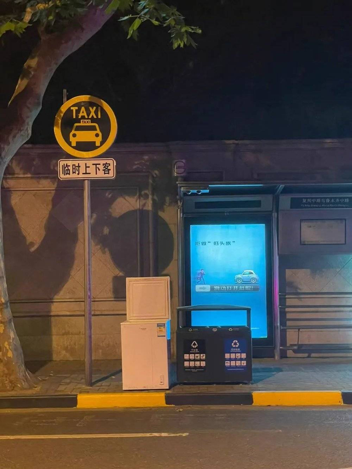 波妞在复兴中路乌鲁木齐中路公交站发现的冰箱