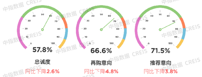 ● 再购、推荐意愿同步趋弱,顾客忠诚度降至57.8%