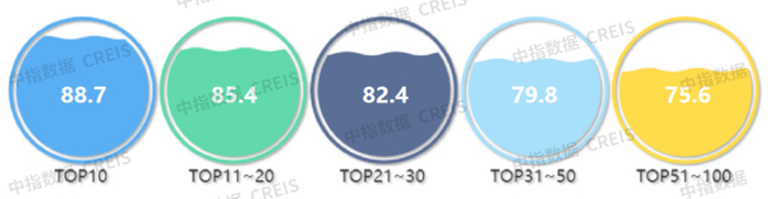 受困于市场的低迷,房企经营普遍承压,满意度表现同样挣扎,但深入分析调查结果,也会发现一些亮点。从不同梯队房企来看,TOP100中各层级房企满意度均值都高于行业均值,尤其TOP10房企,满意度达到88.7分的历史高值,表明头部房企在困境中坚守高品质、巩固品牌美誉度的举措卓有成效。
