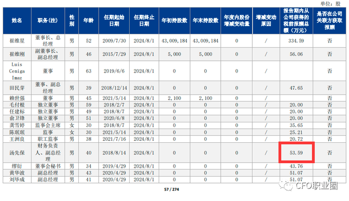 根据该公司2021年年报披露,汤先保获得薪酬53.59万元。