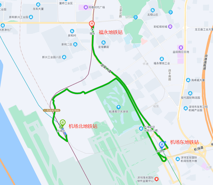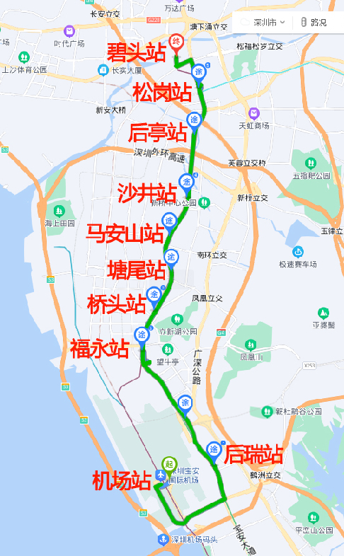 机场GTC15号门、后瑞地铁站、福永地铁站、桥头地铁站、塘尾地铁站、马安山地铁站、沙井地铁站、后亭地铁站、松岗地铁站、碧头地铁站