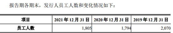 不过,燕东微2019年至2021年每年年末的员工人数分别为2070人、1794人、1805人,呈下降趋势。其中,2021年年末相较2019年年末减少了265人。