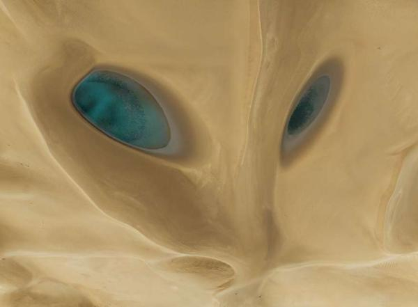 《沙狐之眼》以沙为身、以泉为眼,勾勒出一张栩栩如生的狐脸。作者王汉冰的这幅作品拍摄于今年7月的库木库里沙漠,雨季后沙漠中形成了一汪一汪的水,从高空中俯瞰酷似一双狐狸的眼睛。评委点评:“虽是一个静态的照片,但它体现了这样一种感知,仿佛是无人机之眼瞬间的惊鸿一瞥,有脆弱性和一刹那间的感觉。”