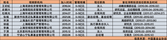 依据中基协备案信息,资事堂梳理了部分曾任职泽熙投资并继续从事私募投资的人员情况。