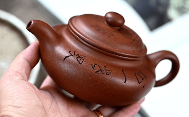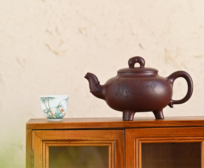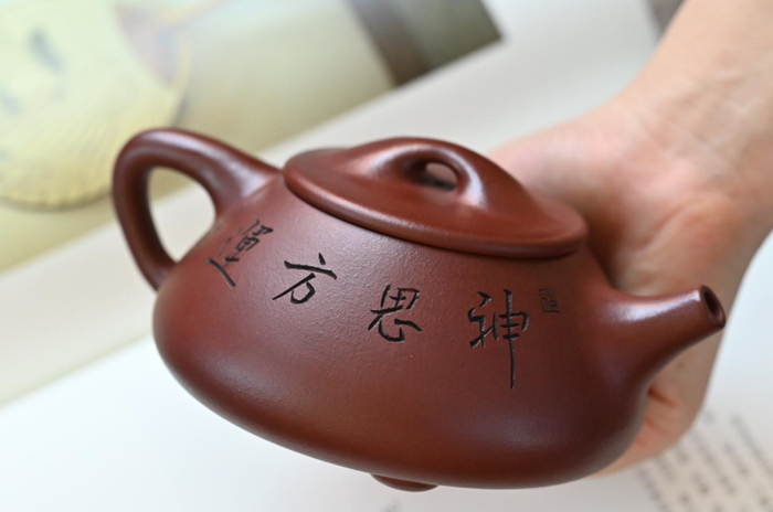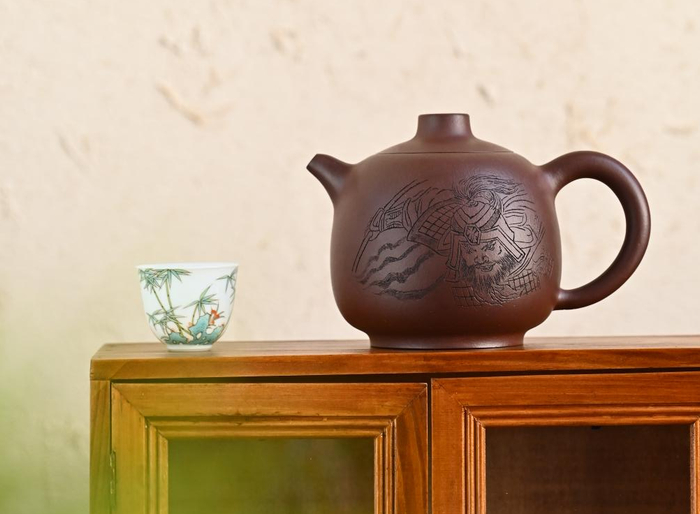 陈老师也是多番尝试,除了造型复刻完美外,壶面篆刻的逍遥仙君也是栩栩如生。