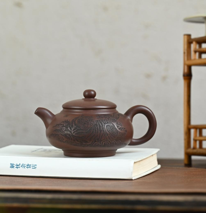 今年是虎年,陈晔老师特意设计了这款“王者雄风”紫砂壶。