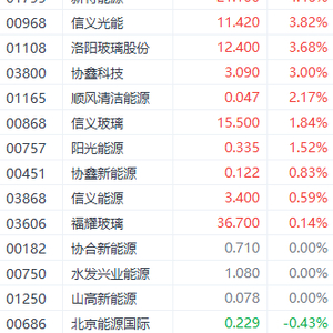 港股光伏概念股多数走强 福莱特玻璃涨超10%