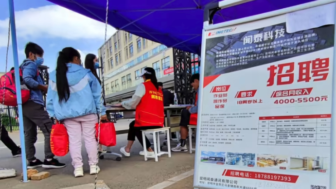 从昆明向南驱车 40 公里,闻泰科技的招聘人员正忙着为公司扩建后的工厂招聘数万名工人,该公司希望这个庞大的园区最终将为苹果供应产品。