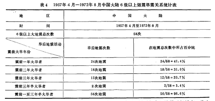 根据该理论提出者自己的统计,大地震前 3 年半内有大旱的比例是 96.6%,可谓是“大震前必有大旱”。