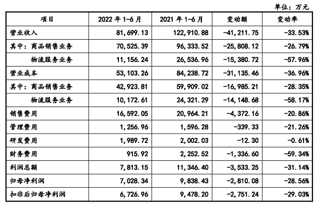 (3)2022年2月,公司原重点客户不再向公司采购物流服务,均采用自有物流进行配送,导致2022年1-6月来自该客户的收入同比有所下降。