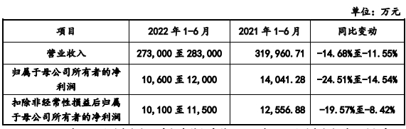结合市场环境和公司目前经营状况,经初步测算,赛维预计2022 年上半年营业收入为22亿到23.8亿元,同比最高减少22.84%,净利润预计为1.1亿到1.44亿,同比最高减少55%。