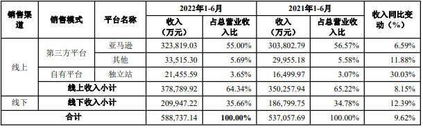 易佰网络在亚马逊实现销售的网店数量为729个,当期新增 34 个,关闭11个。除亚马逊外,公司通过其他第三方平台实现的销售收入占2022年 1-6 月营业收入的比例均不超过10%。