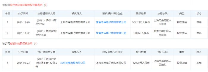 上海寺库电子商务有限公司的法定代表人为孟祥军,由北京寺库商贸有限公司(下称“北京寺库”)全资持股。