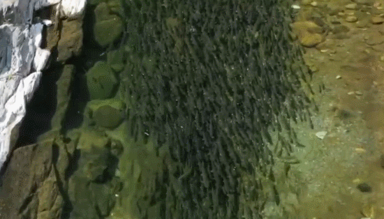 近日,在陕西秦岭深处的黑河上游,稀有珍贵的冷水鱼类秦岭细鳞鲑却成群结队欢快地溯游在河中,如此之大如此之多的细鳞鲑鱼群游弋于此,多年来实属罕见。