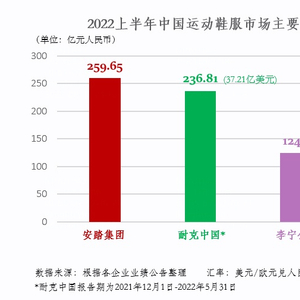 同时,安踏上半年营收也超过耐克中国2022财年第三四季度(2021年12月1日至2022年5月31日)业绩总和37.21亿美元(约合人民币236.81亿元)。