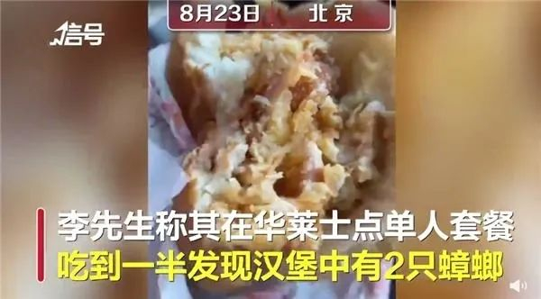据一点资讯信号财经报道,8月23日,北京李先生反映在华莱士点了一份单人套餐,吃到一半发现汉堡中有蟑螂,掰开后发现里面还有一只,觉得很恶心。