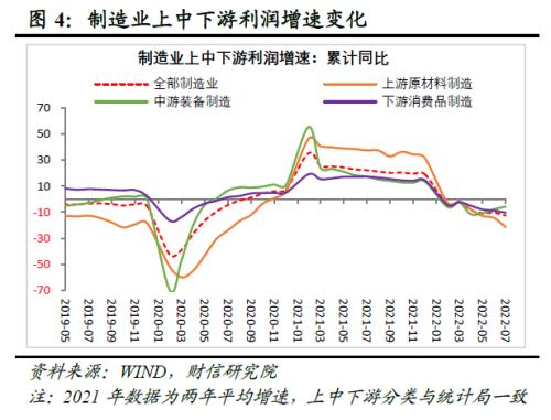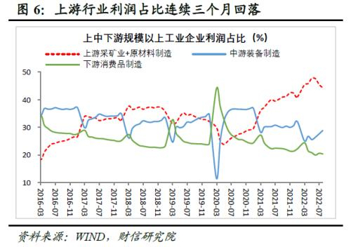 二、上游利润回落、中游盈利改善,工业利润结构持续向好