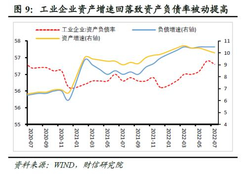 2022年7月末,工业企业资产负债率为56.8%,较去年同期提高0.5个百分点(见图9)。