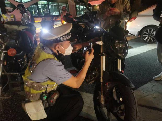 据了解,当晚两个小时的夜查行动中,回龙观交通大队处罚了摩托车交通违法行为35起,电动自行车交通违法行为43起。其中,有7辆摩托车因未按规定购买机动车交通事故责任强制保险,被警方暂扣。