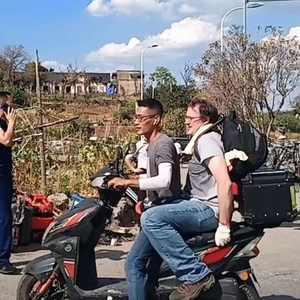 8月23日,福兰课和其他志愿者一起在缙云山的山脚下待命,等待着摩托车把他们一个一个送上山去。北碚当天气温非常高,至少有43℃,福兰课在太阳下等了一个小时才等到开摩托车来接他上山的志愿者。这些摩托骑手在这次支援山火的过程中起到了非常重要的作用。福兰课说,自己体重不轻,个子又高,送他的那个摩托车志愿者挺瘦的,福兰课觉得他太了不起了,非常感动。